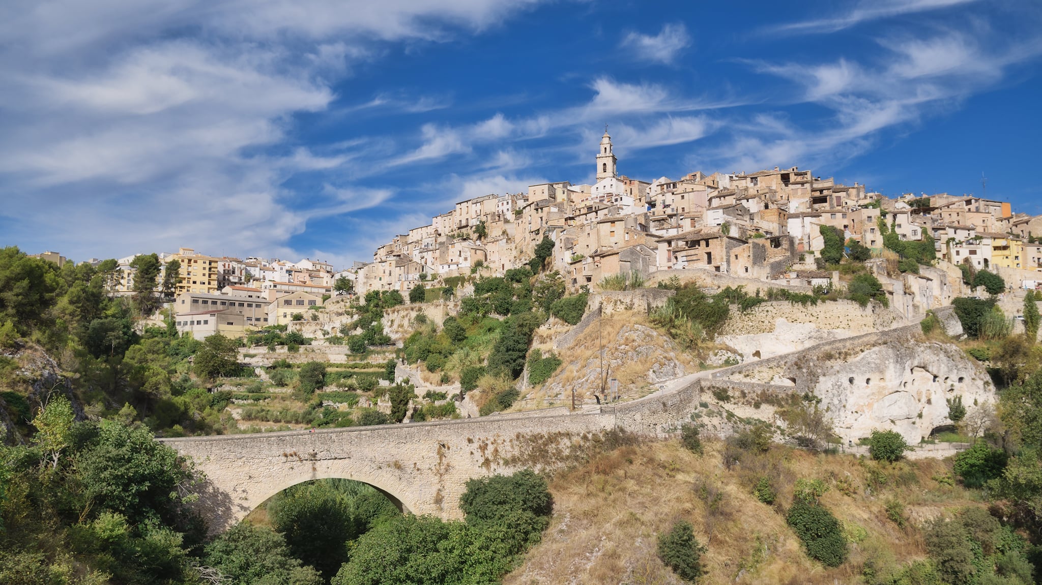 Pasear por Bocairent es viajar en el tiempo, recorrer calles que conservan la huella del pasado musulmán. Anímate a cruzar el puente más alto del antiguo reino y explora las cuevas hispanoárabes, perfectamente conservadas, con más de 50 ventanas interconectadas en su interior y reconocidas como monumento histórico del Tesoro Artístico Nacional.